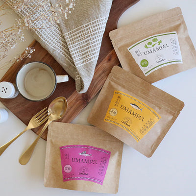 1) Beat the eggs in a bowl and rip open a pack of UMAMI dashi Veggies and add the content with milk into the bowl and mix well.